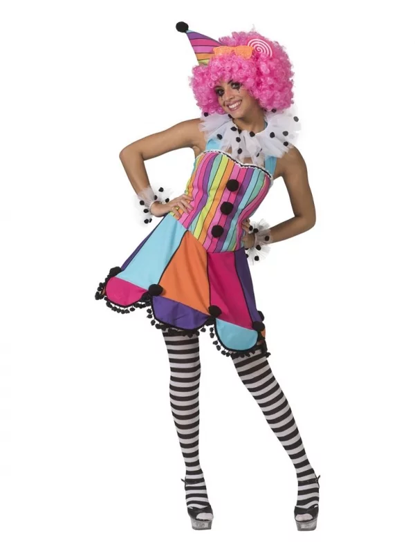 Déguisement Clown femme (robe, chapeau, collerette et poignets)