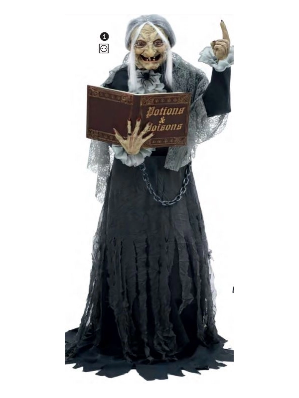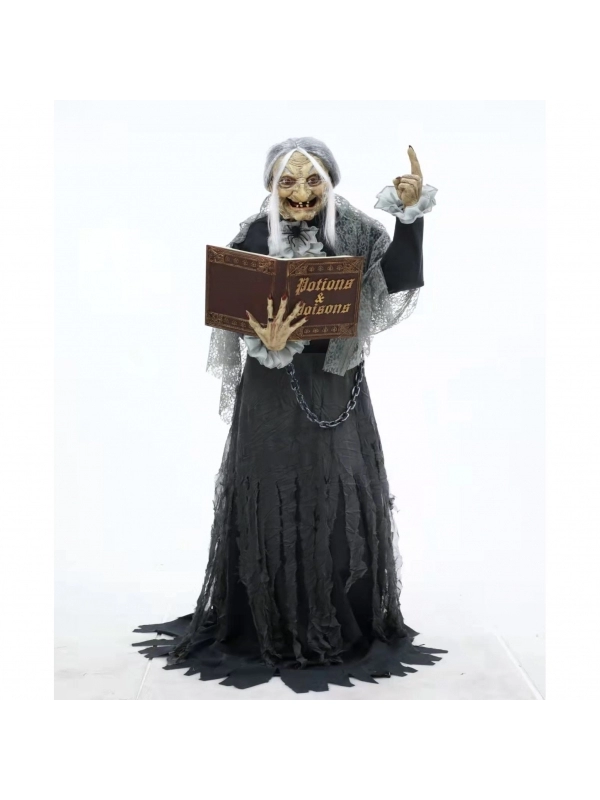 Automate sorcière animée, mouvement, son et lumière avec grimoire !