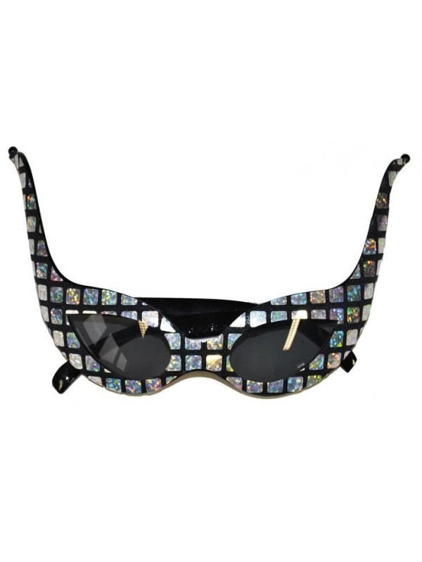 Jouez les divas en arrivant à votre soirée avec cette paires de lunettes de star noir et argentées.