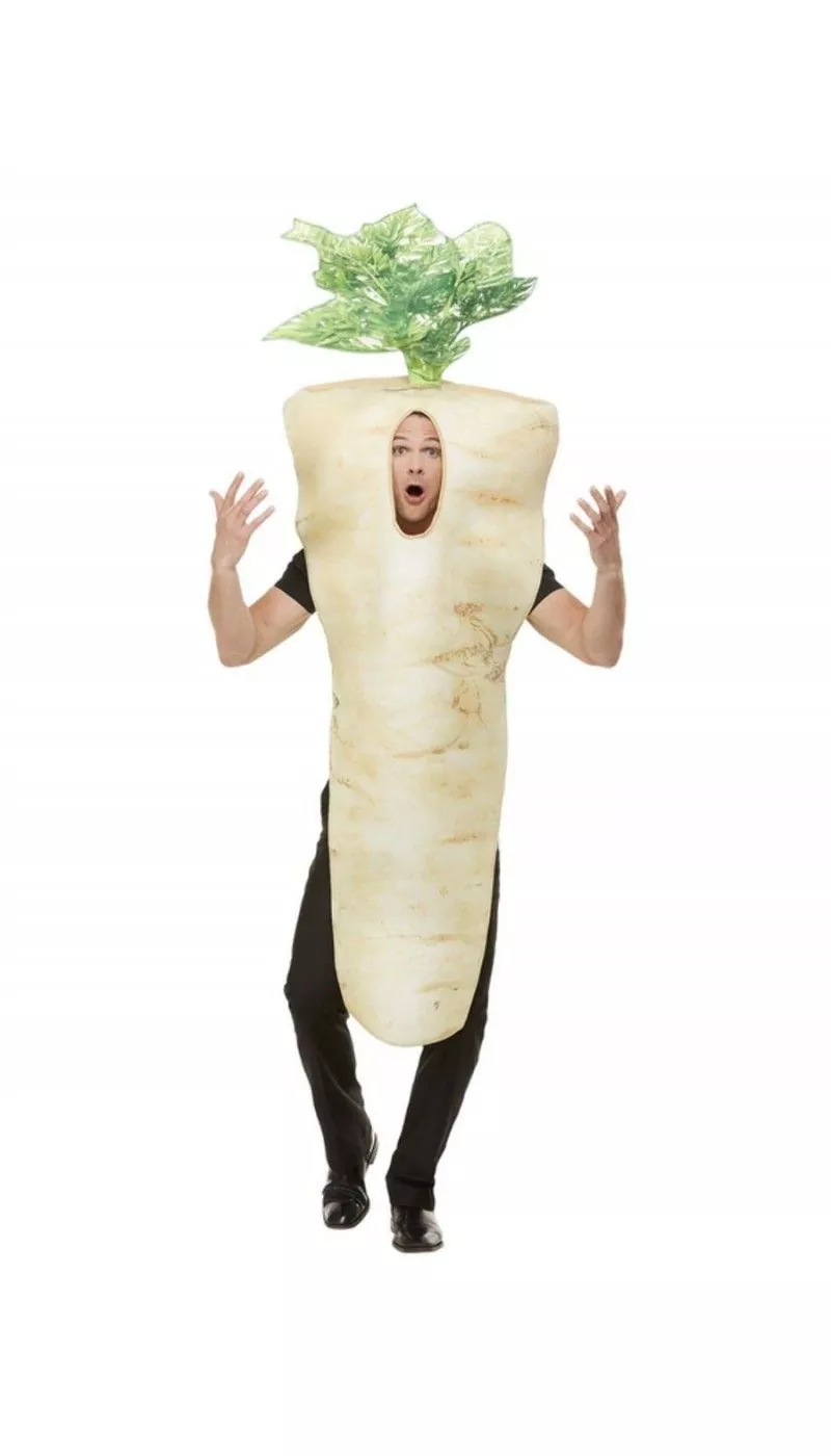Ce déguisement Navet est idéal lors d’un festival gastronomique ou d’une promo de magasin bio… Mais vous pouvez aussi le mettre lors d’un spectacle, une fête d’anniversaire ou tout autre événement où vous devez être au moins aussi drôle qu’un clown.