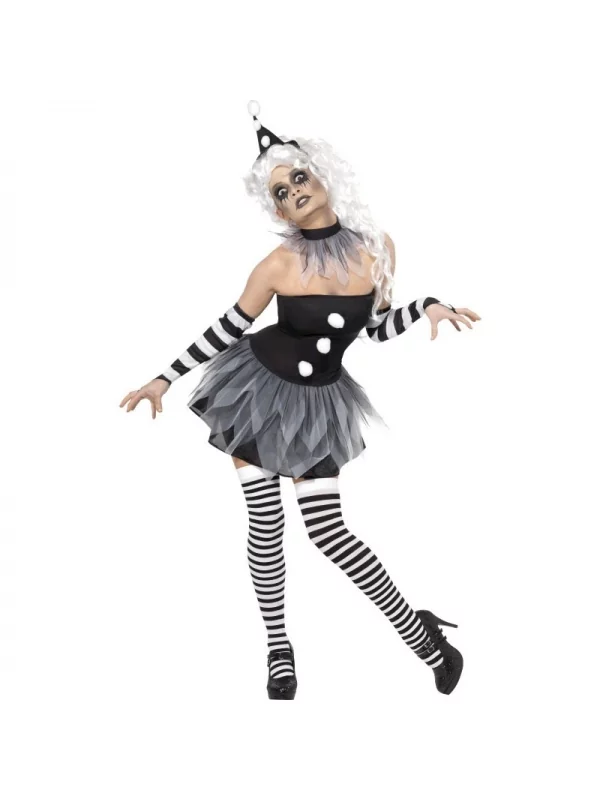 Déguisement Pierrot femme (robe, ras du cou, chapeau & manchettes)