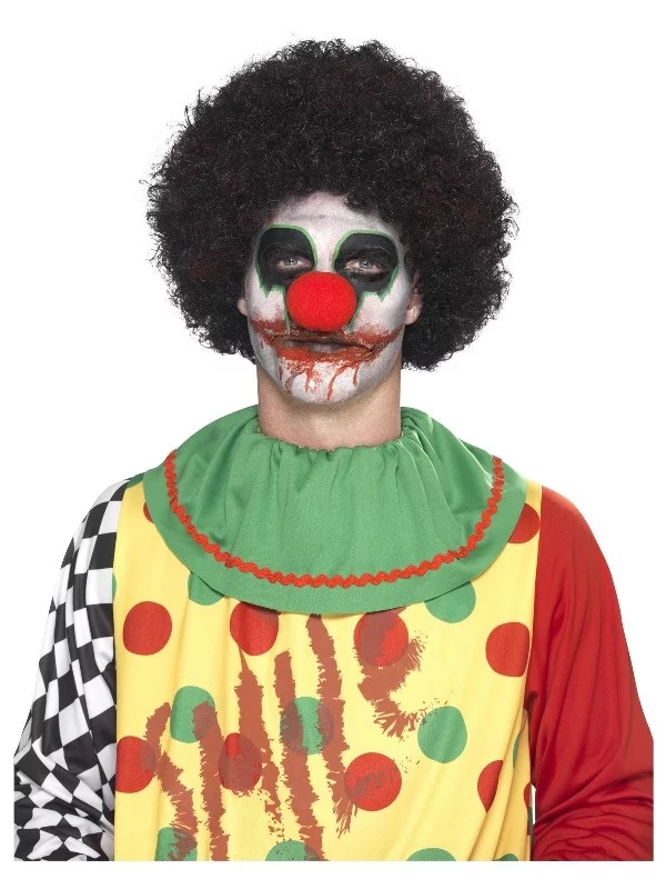 Voulez-vous montrez à vos convives à quels points les clowns sont terrifiants ? Choisissez donc ce kit maquillage clown de mort pour déguiser votre visage. Le kit se compose de deux tatoo pour les contours des yeux, un applicateur, un pinceau ainsi que des fards rouge, noire et jaune