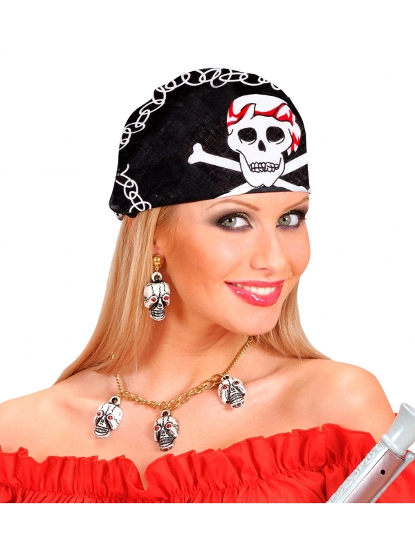 Le bandana tête de mort est un accessoire de déguisement parfait pour Halloween, les fêtes à thème pirate ou tout autre événement où un look effrayant et original est de mise. Ce bandana convient aux adultes et aux enfants, il mesure 55 x 55 cm et arbore un motif de tête de mort en blanc sur fond noir.