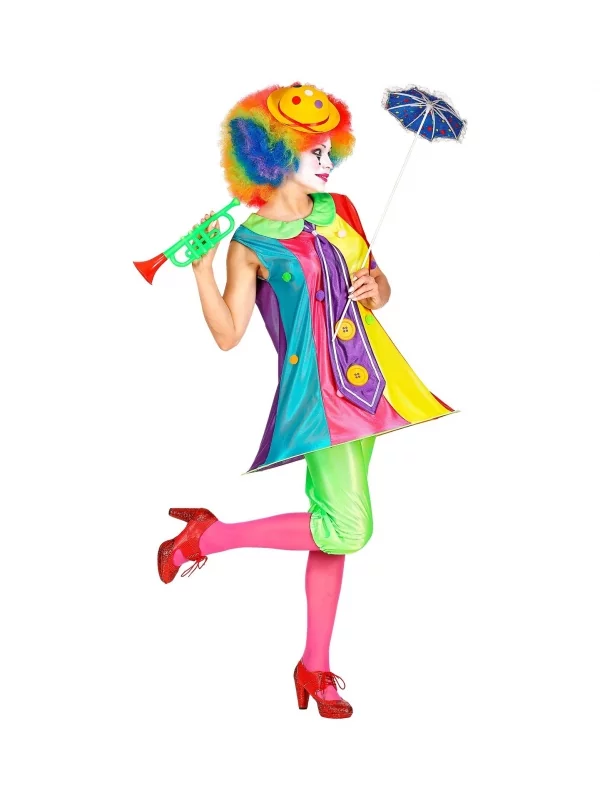 Ce déguisement de femme clown multicolore de chez Widmann aborde joliment le thème ludique et divertissant.