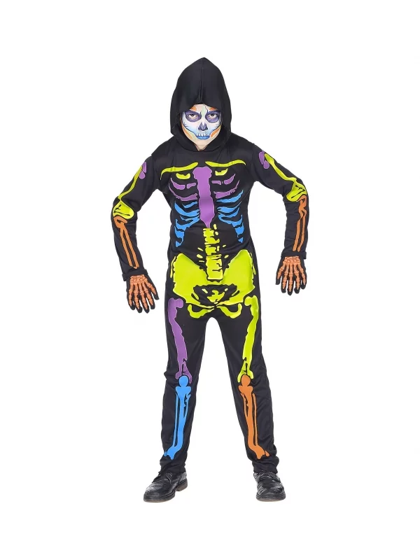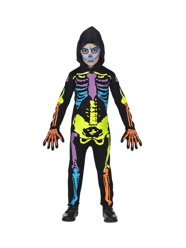 Déguisement squelette, enfant multicolore (combinaison à capuche)